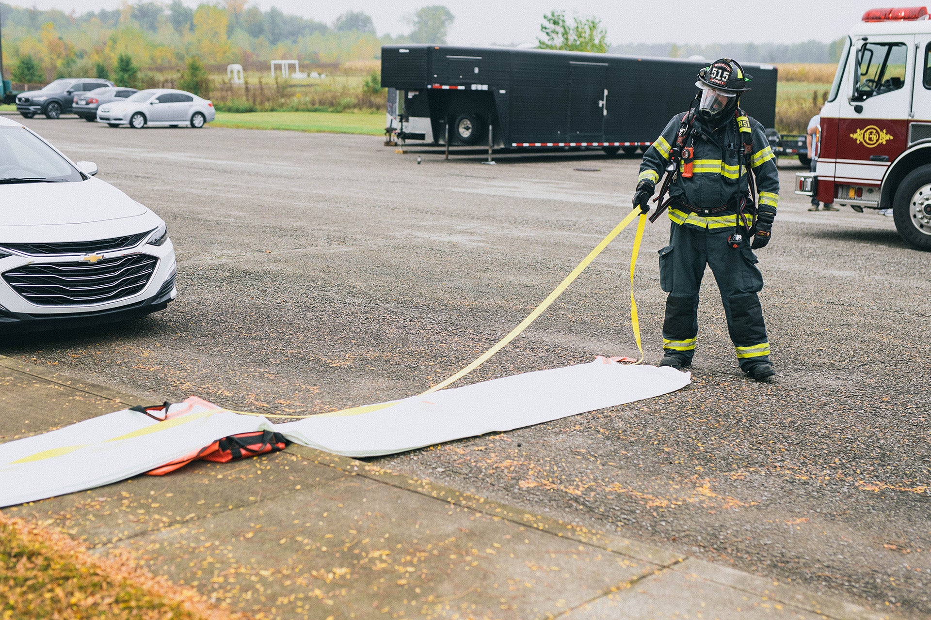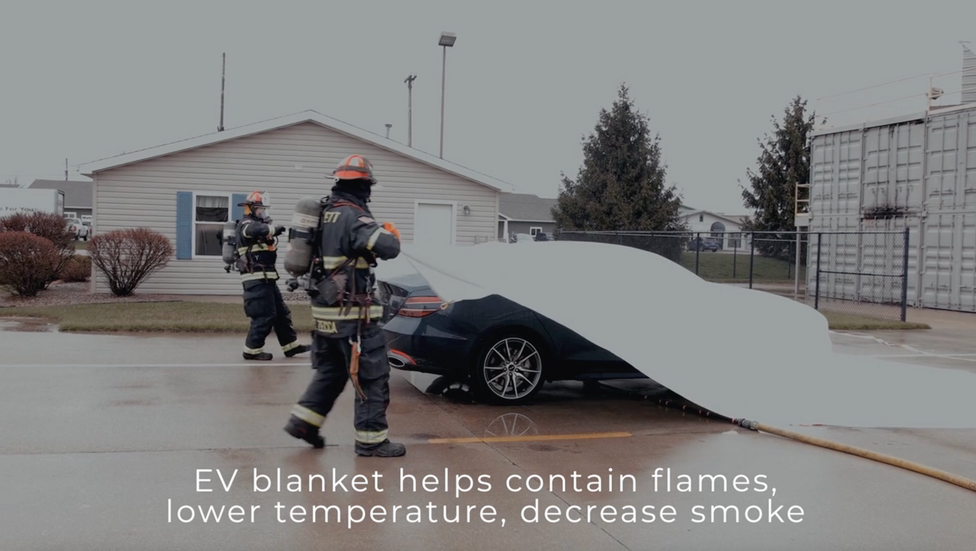 - Quick rollout deployment strap system doubles as a whole vehicle wrap around cinch (45’ length in case the responders need to secure the EV Fire Suppressor Blanket ST tight around the base of the vehicle).
