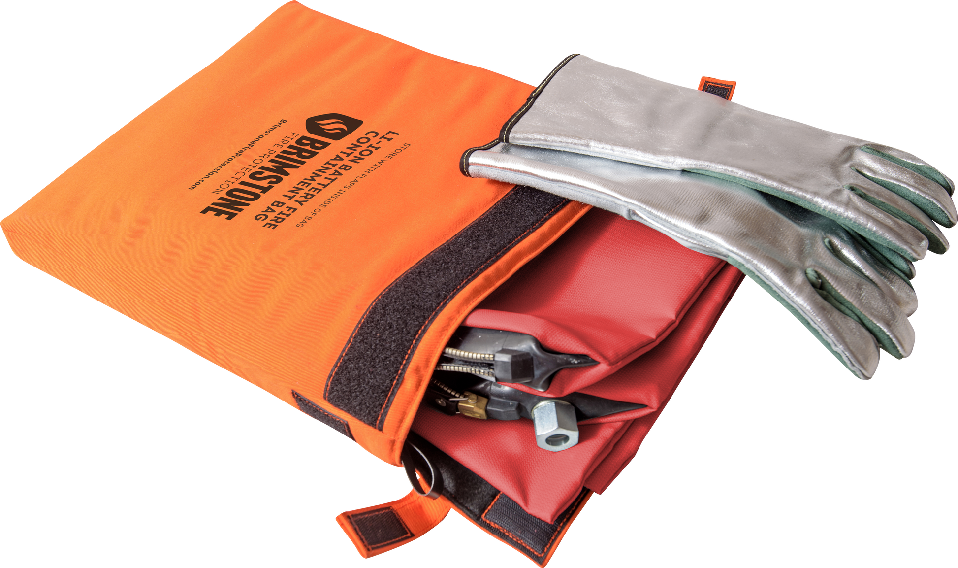 • Note: Gloves and Smoke Containment Bag fit inside the Li-Ion Fire Containment Bag for storage (as pictured).