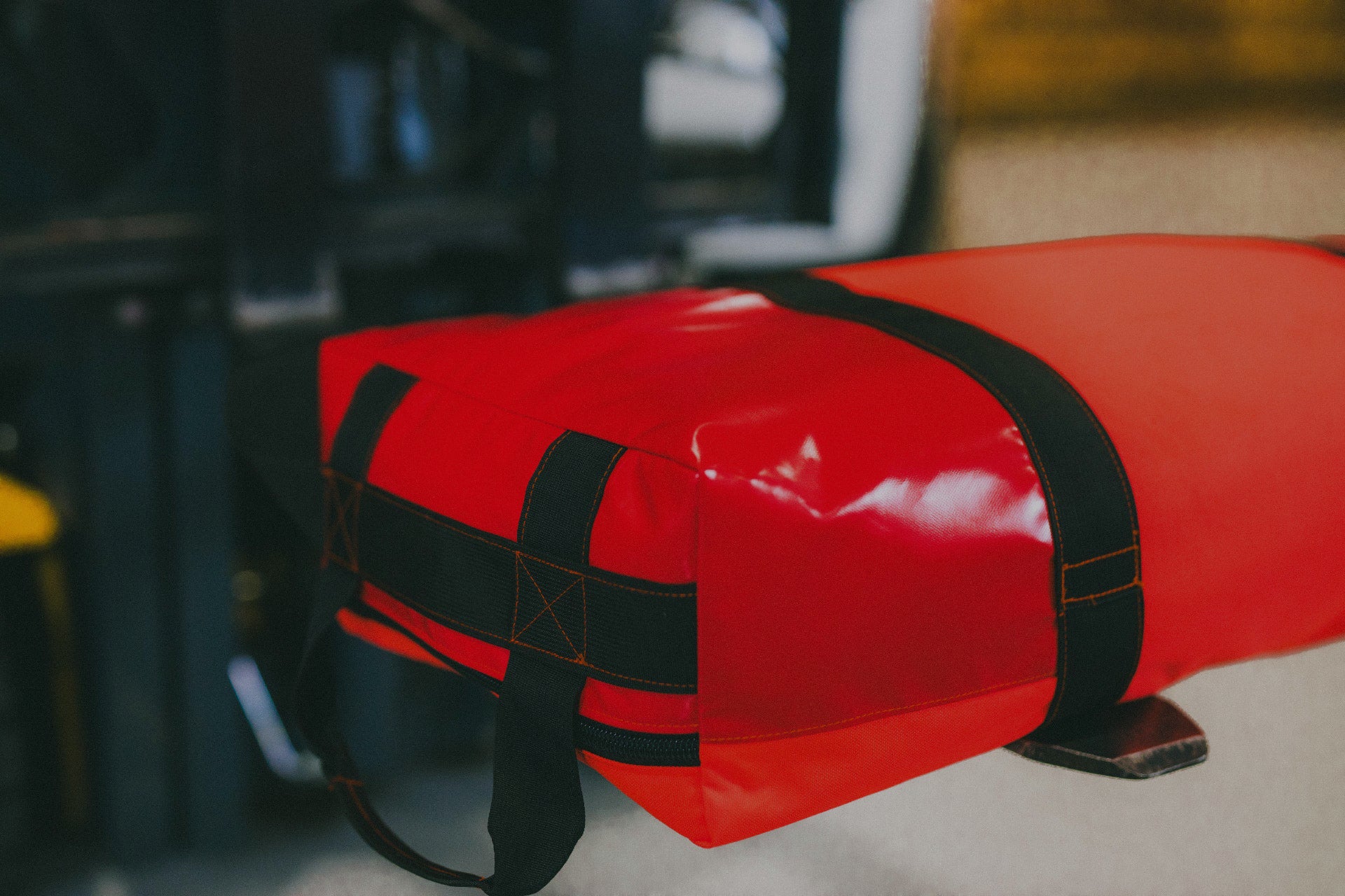 - Reinforced red "DRAG & GO" pad on bag.