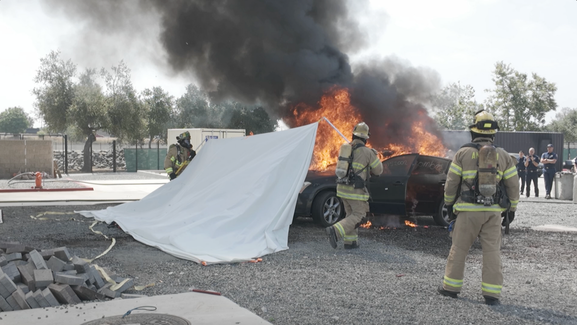 - An EV blanket may also be used as a fire break (covering an object to protect it) or a fire wall (creating a barrier between the fire and other property).