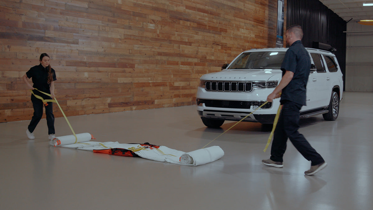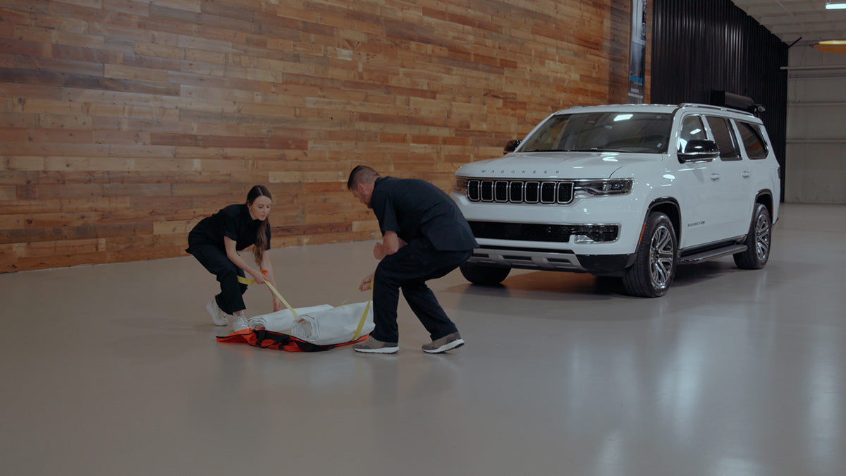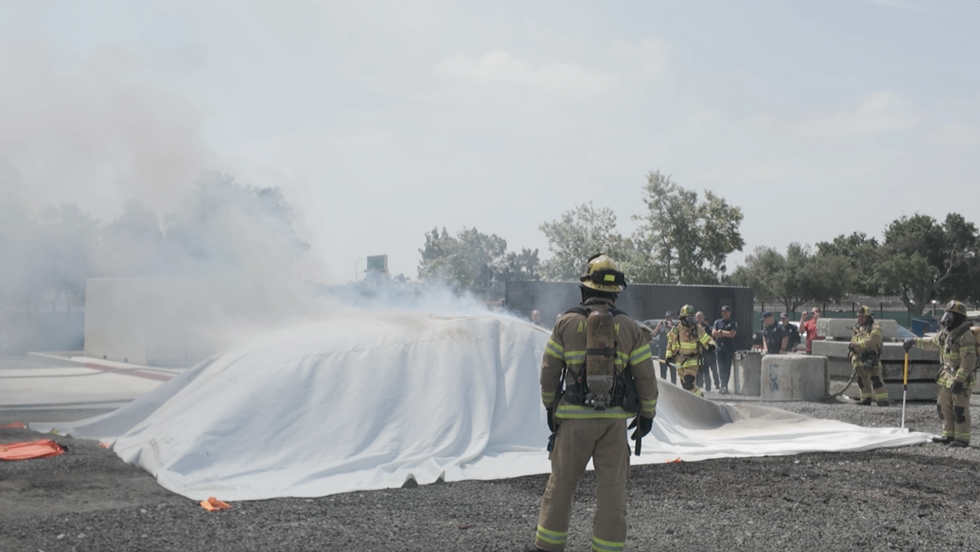 - Quick rollout deployment strap system doubles as a whole vehicle wrap around cinch (53’ length in case the responders need to secure the EV Fire Suppressor Blanket XL tight around the base of the vehicle).